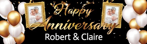 Our beautiful anniversary banners can be personalised with photos of the happy couple through the years,
